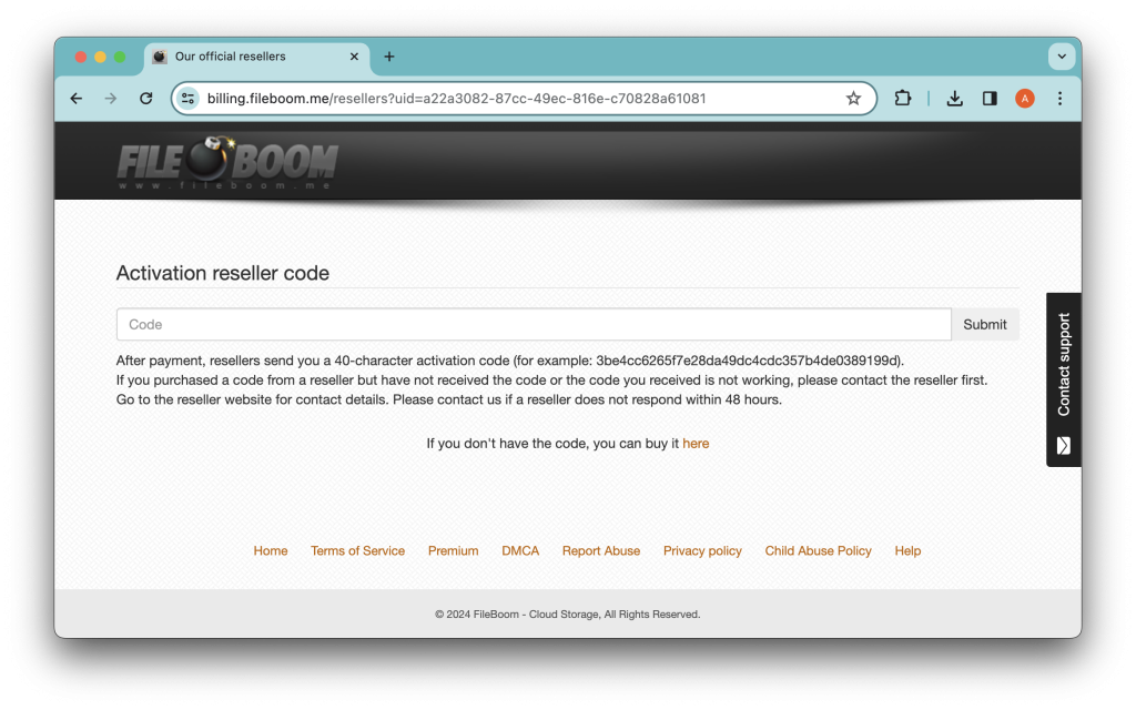 3. Make sure you are logged in. Then access this link: https://fboom.me/reseller-code