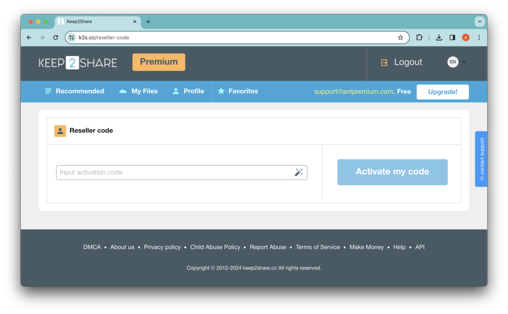 How to activate Keep2share/K2s premium key at K2s.cc?